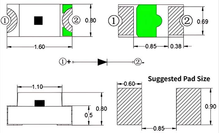 TY-X0603PG1(0.80)-A | 1.6*0.8*0.8 | Green | 512-525 | 2.7 | 3.5 | 28.5 | 450 | 5 | |